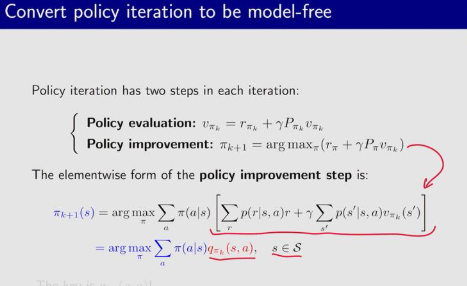 如果我们想要进行策略迭代,又不知道model,那我们还有另一种方式,就是去估计这个q值。