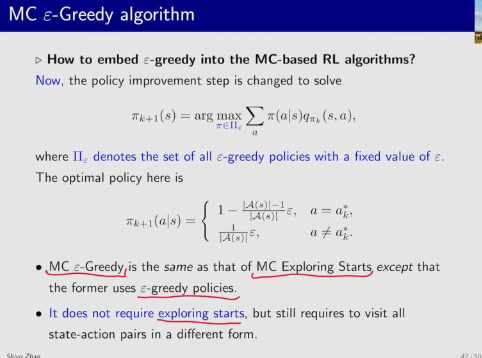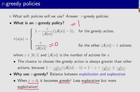 mc exploring star算法需要探索的状态动作对太多,为了提高其他动作的概率,可以采用epislon-greedy方法进行探索,这种方法的策略是:大概率贪心的策略选动作,小概率随机探索