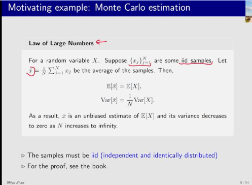 蒙特卡洛定理不仅可以用到强化中,其他需要大量采数据估计期望的方法都可以使用
