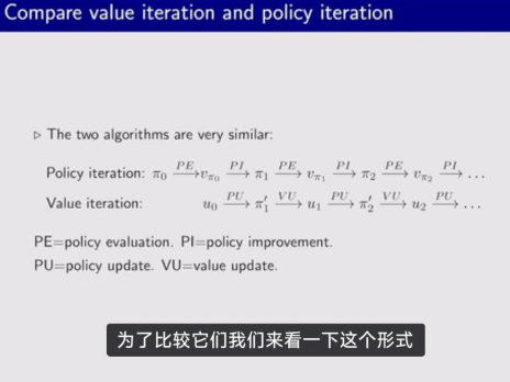 ②策略迭代和值迭代实际上是两个极端,值迭代是相同的v下找最优策略,策略迭代是在一个给定的策略下找最优的v