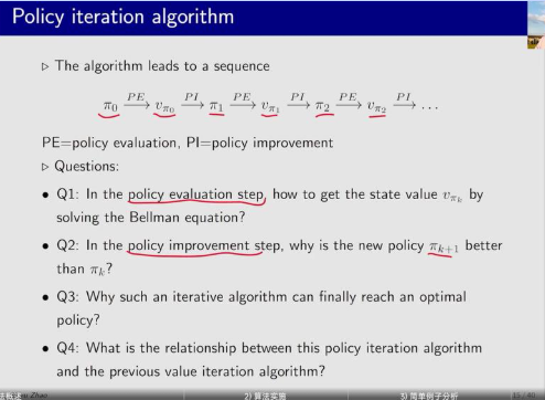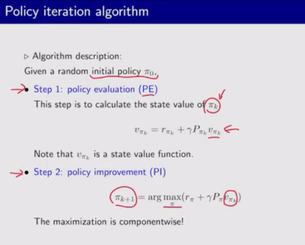 策略迭代先从策略开始,先给策略估值,再算价值更新策略