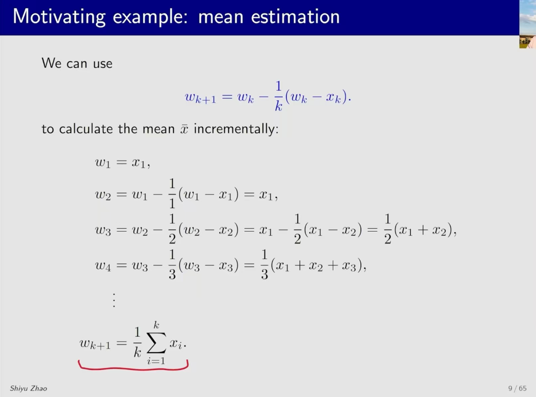 增量的方式求期望,如图所示,是可以通过推导,得到wk + 1和wk之间的关系的。通过迭代最下面的式子可以实现来一个新增数据得一个期望