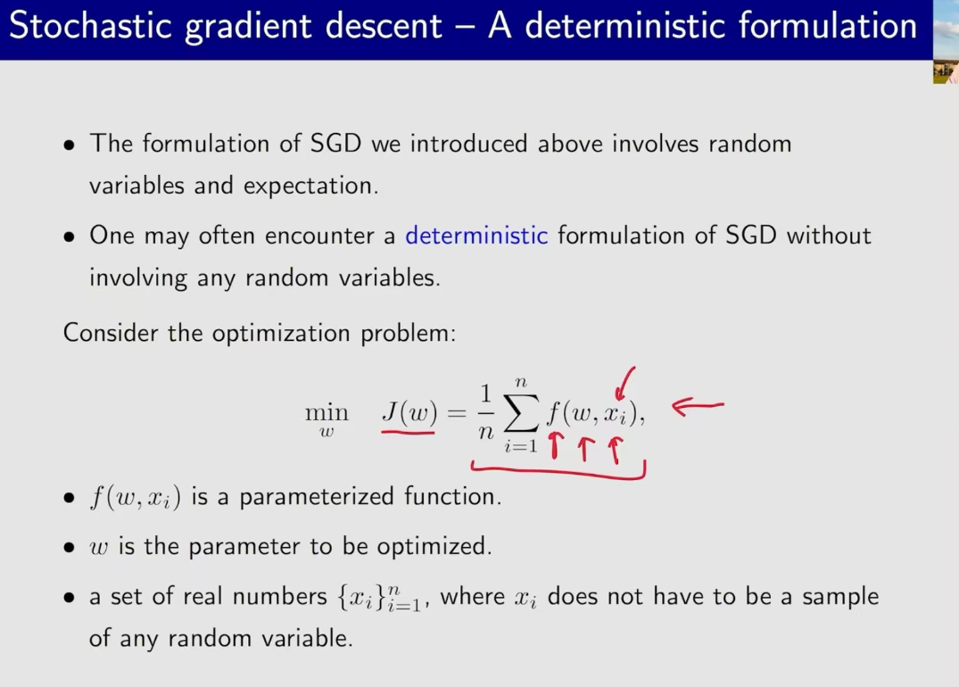 最后一个问题:有时候在SGD算法里面没有看到随机变量,而是一组数,他写成了和SGD类似的形式,这里面没有随机变量X,也没有期望,就是取平均,这时候还是SGD吗