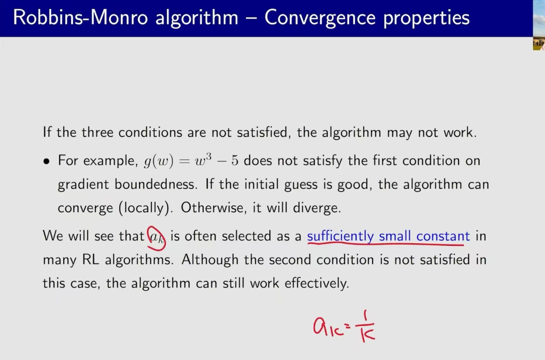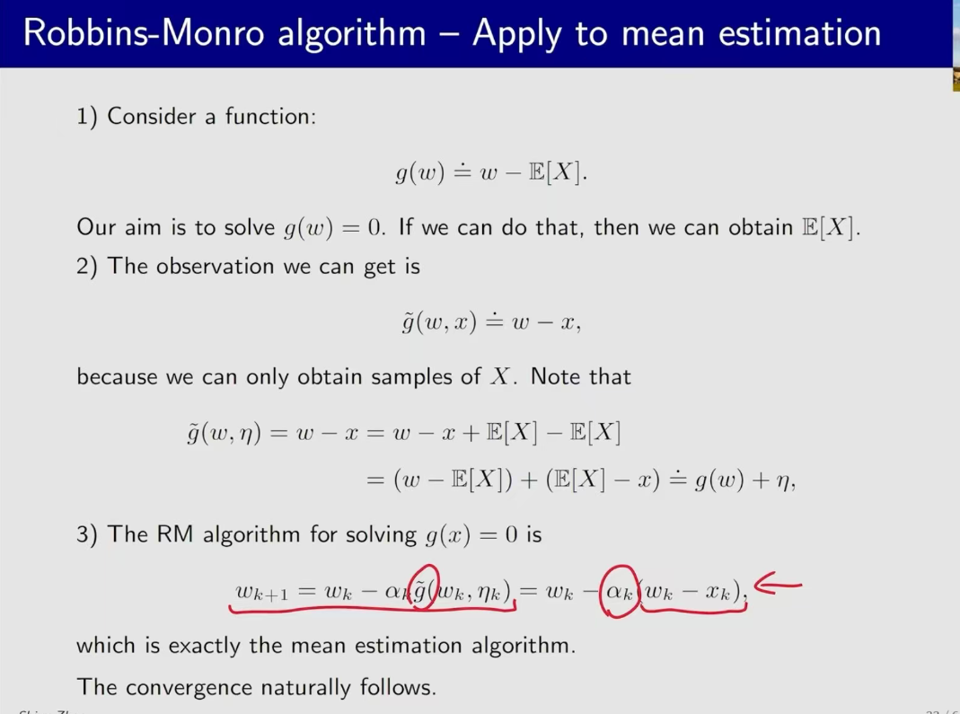 RM算法是用迭代的方式去求g(w)=0的一个方法,也就是
