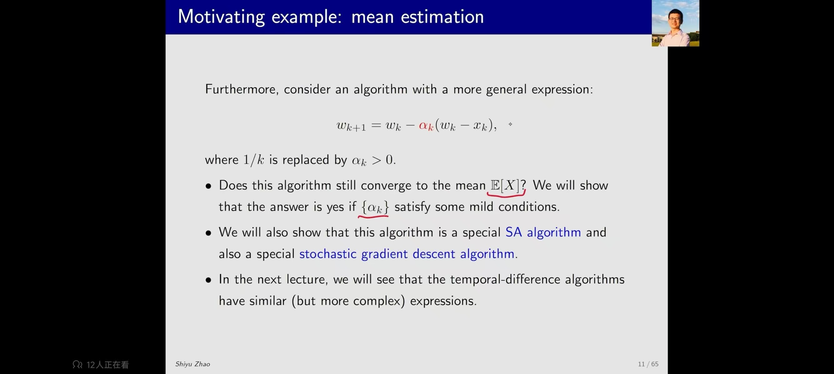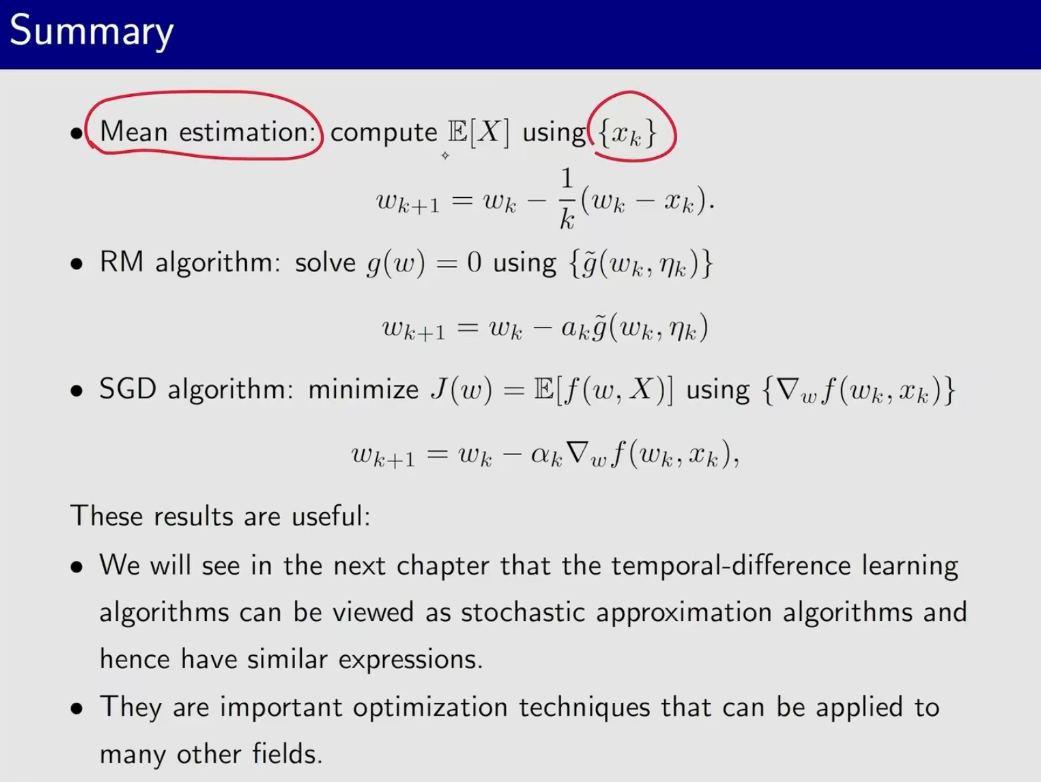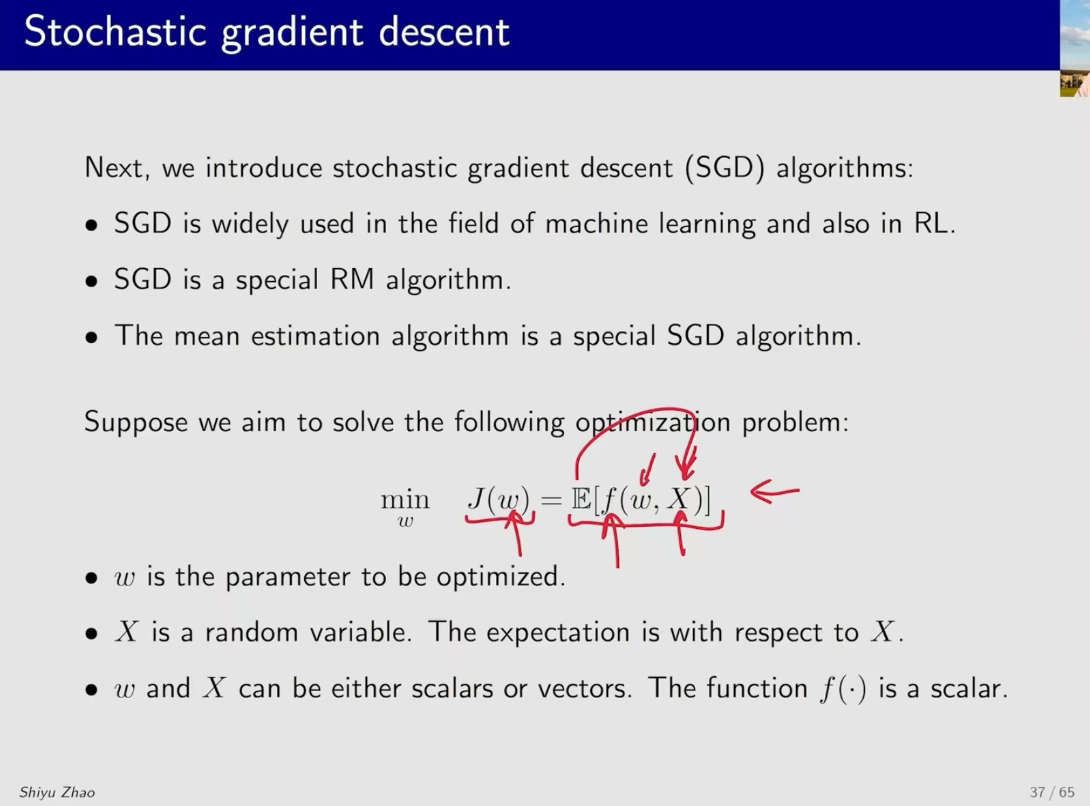 sgd算法在机器学习领域经常用,在强化领域也经常用。 sgd是一种特别的rm算法 平均值估计算法是一种特殊的sgd算法。