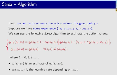 sarsa进行策略评估的时候只用了一个sa对就对策略进行更新。这是相比之前的办法最大的不同
