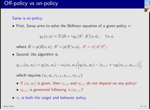 因为他在使用样本更新模型的时候,需要at + 1,这个at + 1又需要依赖策略模型。