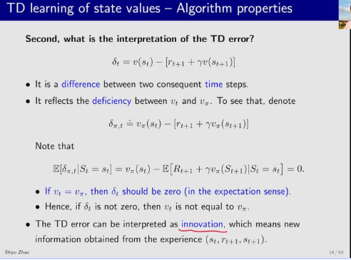 td误差可以用innovation来解释,这里指的是“新的信息”,可以认为每次更新一个experience就是引入新的信息。