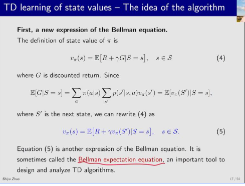 td算法引入了一个新的贝尔曼公式:bellman expection form:bellman expection form