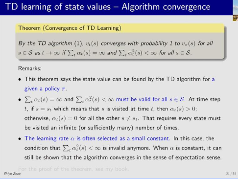 td算法求解状态值的前提条件,和rm算法基本上是一样的。